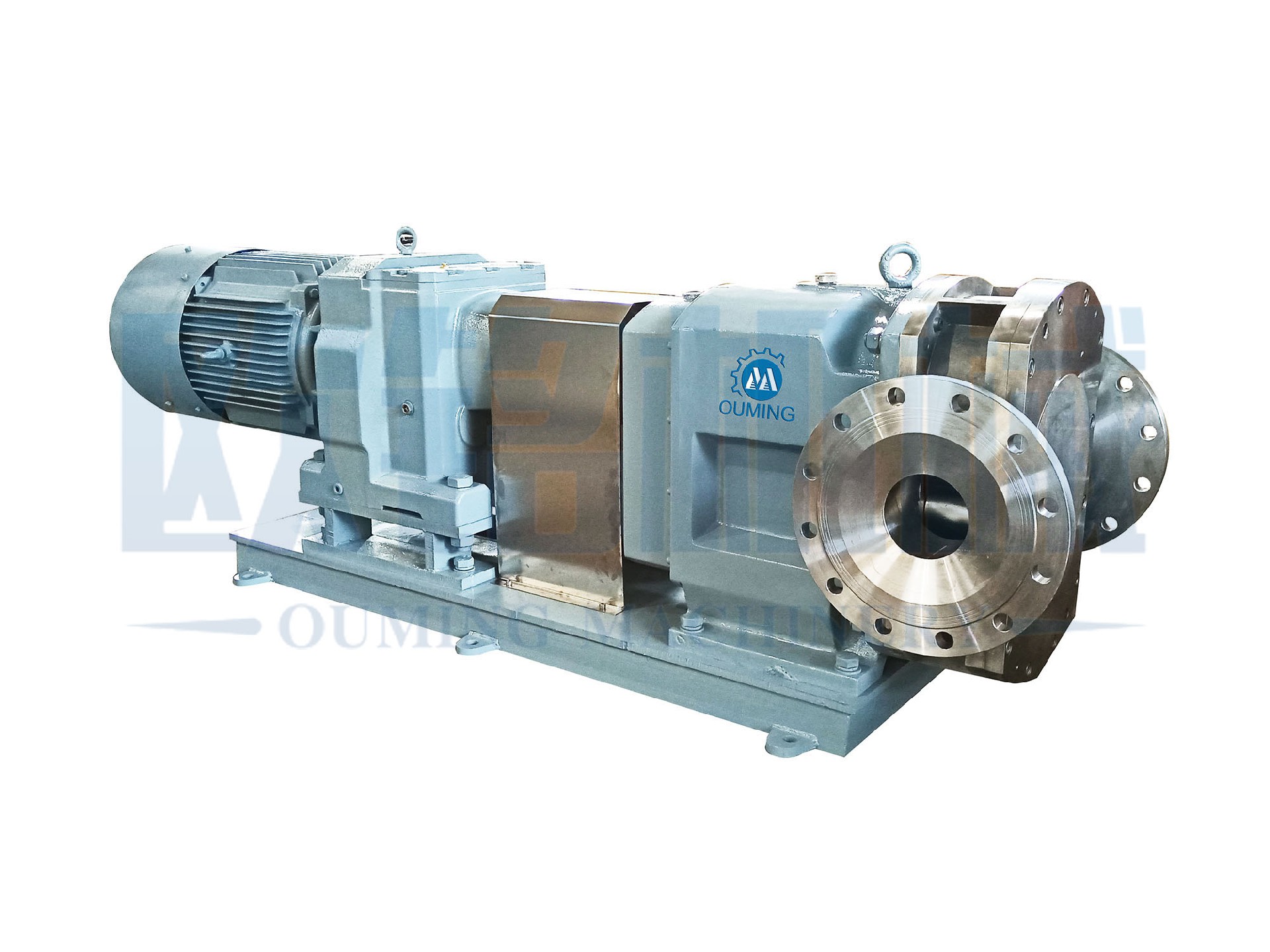 該產品借助于工作腔里的多個固定容積輸送單位的周期性轉化來達到輸送流體的目的。原動機的機械能通過泵直接轉化為輸送流體的壓力能,泵的流量只取決于工作腔容積變化值以及其在單位時間內的變化頻率,而(理論上)與排出壓力無關;轉子泵依靠兩個同步反向轉動的轉子(轉子葉數為2-8)在旋轉過程中于進料口處產生吸力(真空度),兩轉子將轉子室分隔成幾個小空間,在傳動軸的帶動下進行反方向旋轉,介質即被輸送至出料口,從而產生了較高的排放壓力,如此往復循環,特別適合中高粘度介質的輸送。